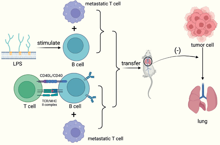 Targeted approaches that augment conventional B cells with B cell ligand stimulation are effective in suppressing tumor growth, while CpG-activated B cells and tumor-draining lymph node B cells (TDLN-B cell) also show enhanced immune properties after metastasis. In a mouse model of breast cancer constructed by researchers, in vitro bacterial lipopolysaccharides (LPS) and CD40-stimulated B cells could limit lung metastasis upon metastasis, and the effect was more pronounced when combined with metastatic T cells [50].