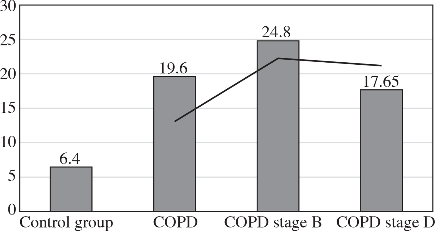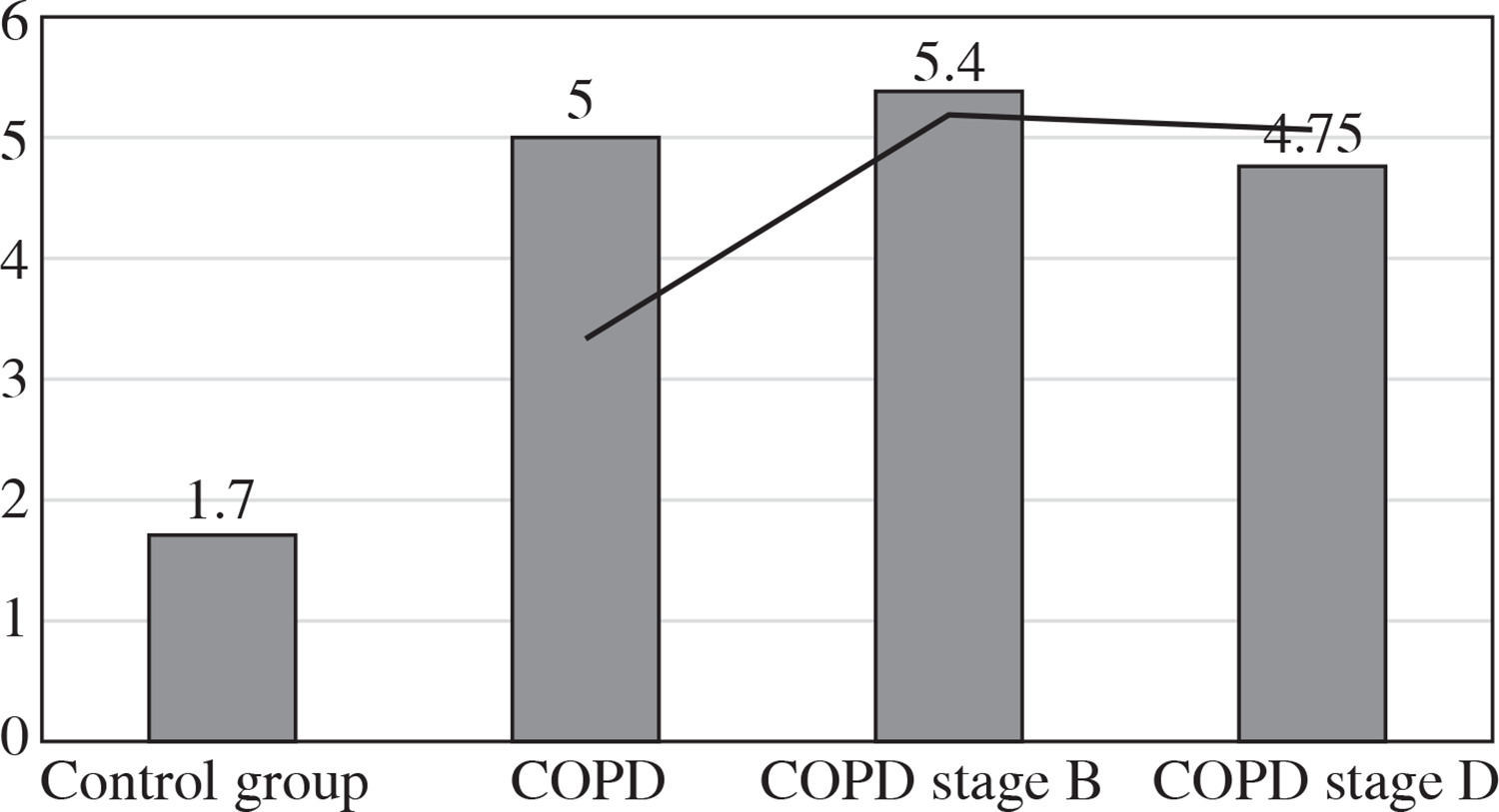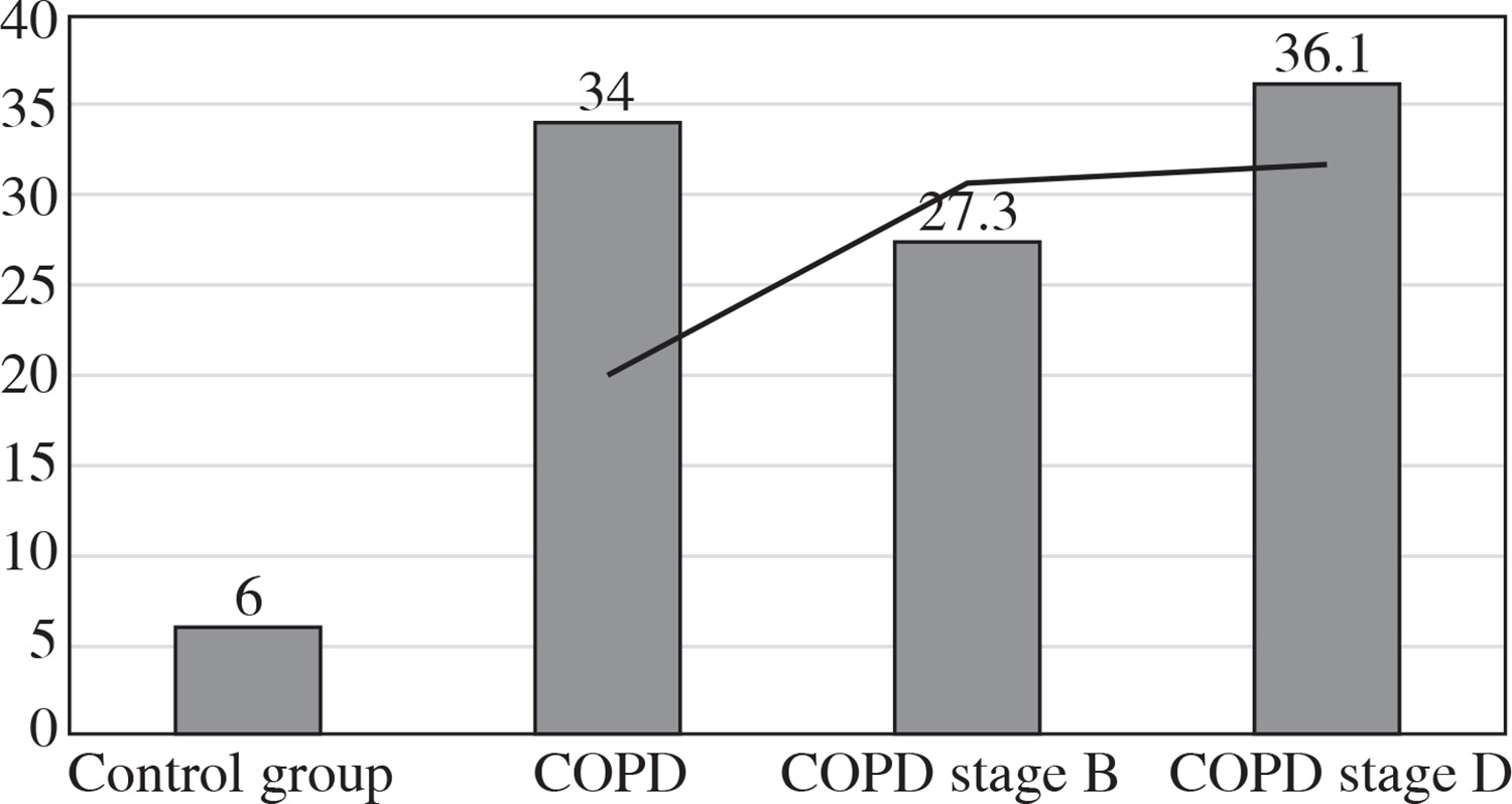 Chronic obstructive pulmonary disease (COPD) is an inflammatory disease of the airways caused by inhalation of toxic substances, among others – in cigarette smokers, and in workers of the chemical industry [1]. It is assumed that COPD is associated with a wide range of consequences, in particular systemic inflammation [2].