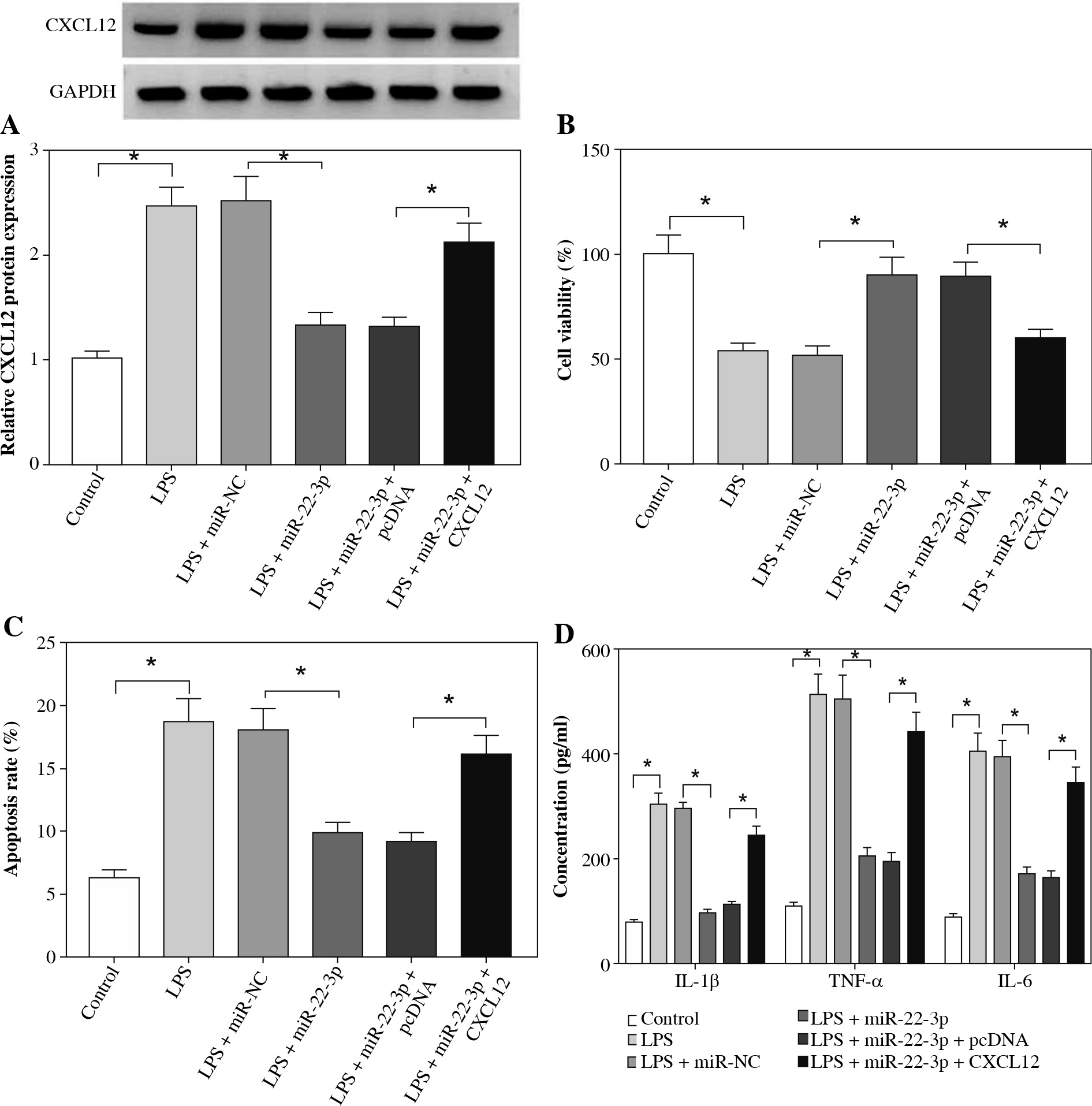 CXCL12 reversed the suppressive effect of miR-22-3p on LPS-induced HK2 cell injury