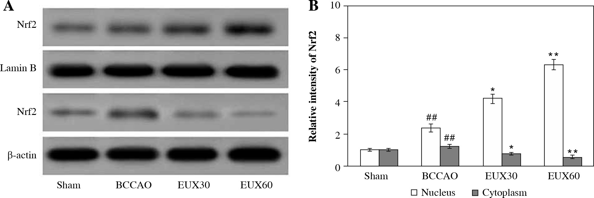EUX enhanced Nrf2 expression in the nuclear fraction in the hippocampi