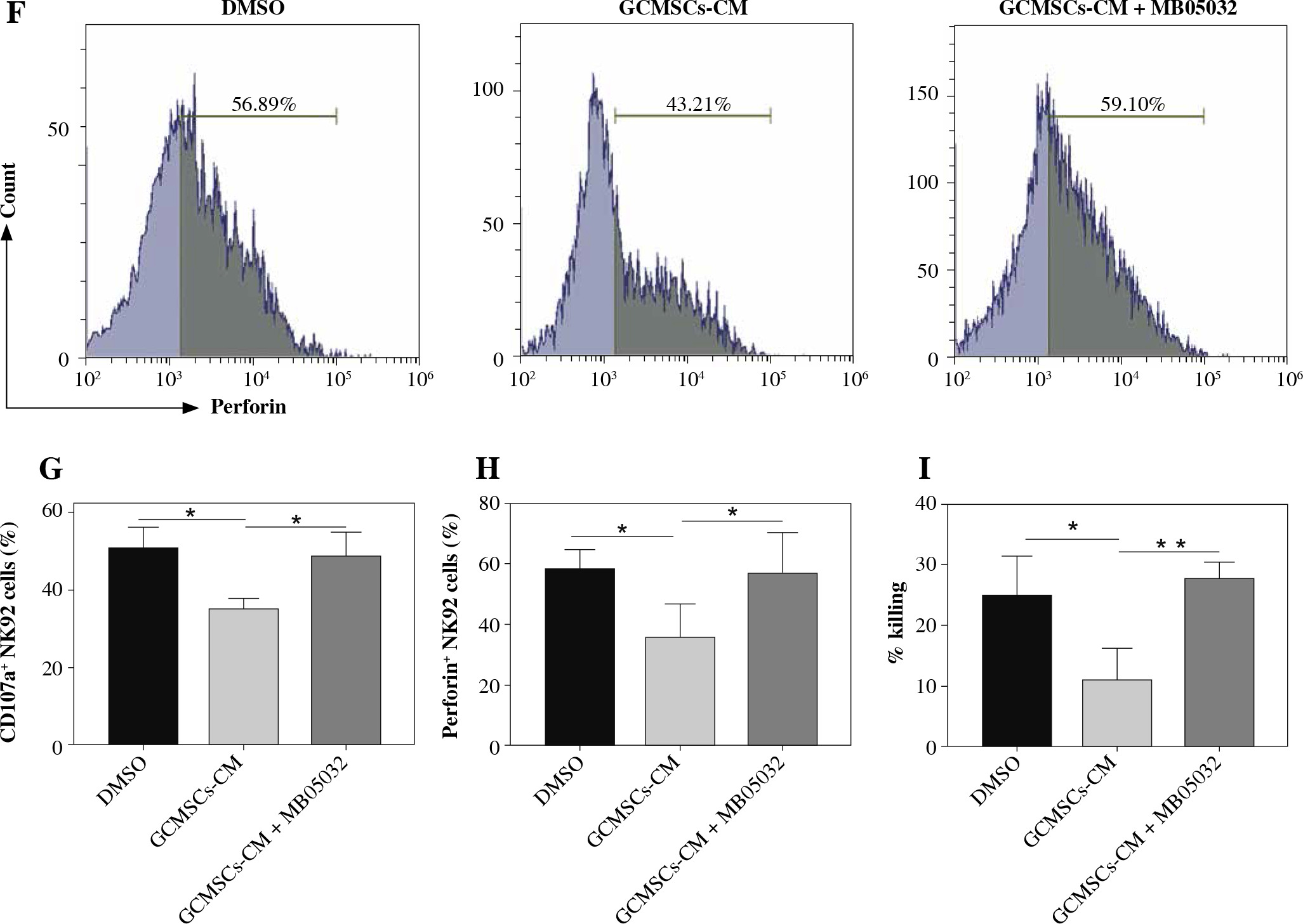 GCMSCs signicantly attenuated degranulation (CD107a), perforin production, and cytotoxicity in NK cells