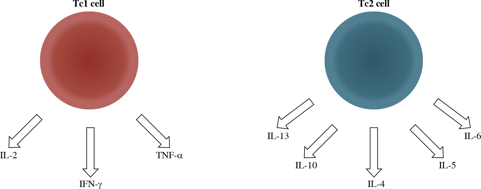 Effector CD8+T cells can be segregated into two populations on the basis of the cytokines they secrete similar to CD4+ T cells. Tc1 cells characteristically produce type-1 cytokines (IL-2, TNF-α, and IFN-γ), whereas Tc2 cells secrete type-2 cytokines (IL-4, IL-5, IL-6, IL-10, and IL-13). Tc1 cells as well as Th1 cells are involved in the protection against intracellular parasites and delayed-type hypersensitivity, but also, they play an important role in autoimmunity. Autoimmune diseases are characterized by increased Tc1/Tc2 ratio, in the same way as Th1/Th2 ratio