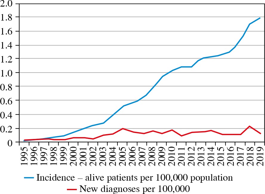 The prevalence of PID in Ukraine was estimated by calculation of the number of living PID patients per 100,000 inhabitants. We used the data collected for the PID registry. Prevalence calculations were based on Ukrainian population data sourced from the National Statistics Committee of Ukraine. The incidence of PID was calculated using data on the year of birth of patients and the number of live births in the respective year.