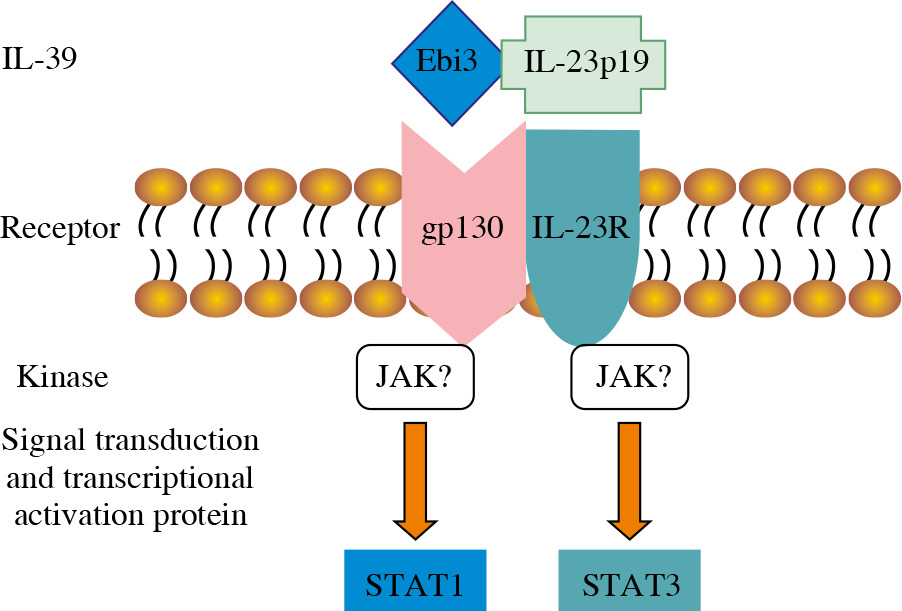 Receptor and signaling pathway of IL-39