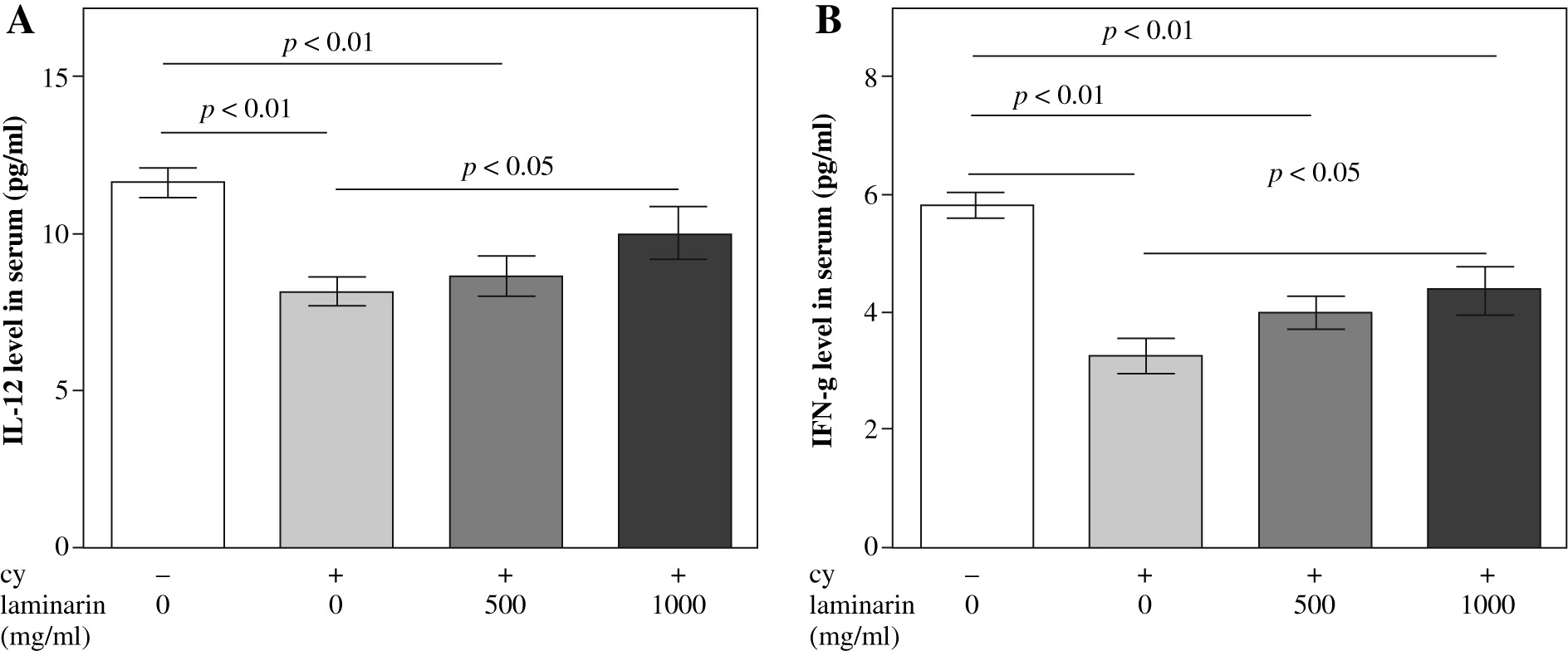 Effects of laminarin on IL-12 and IFN-a level in serum of immunosuppressive mice