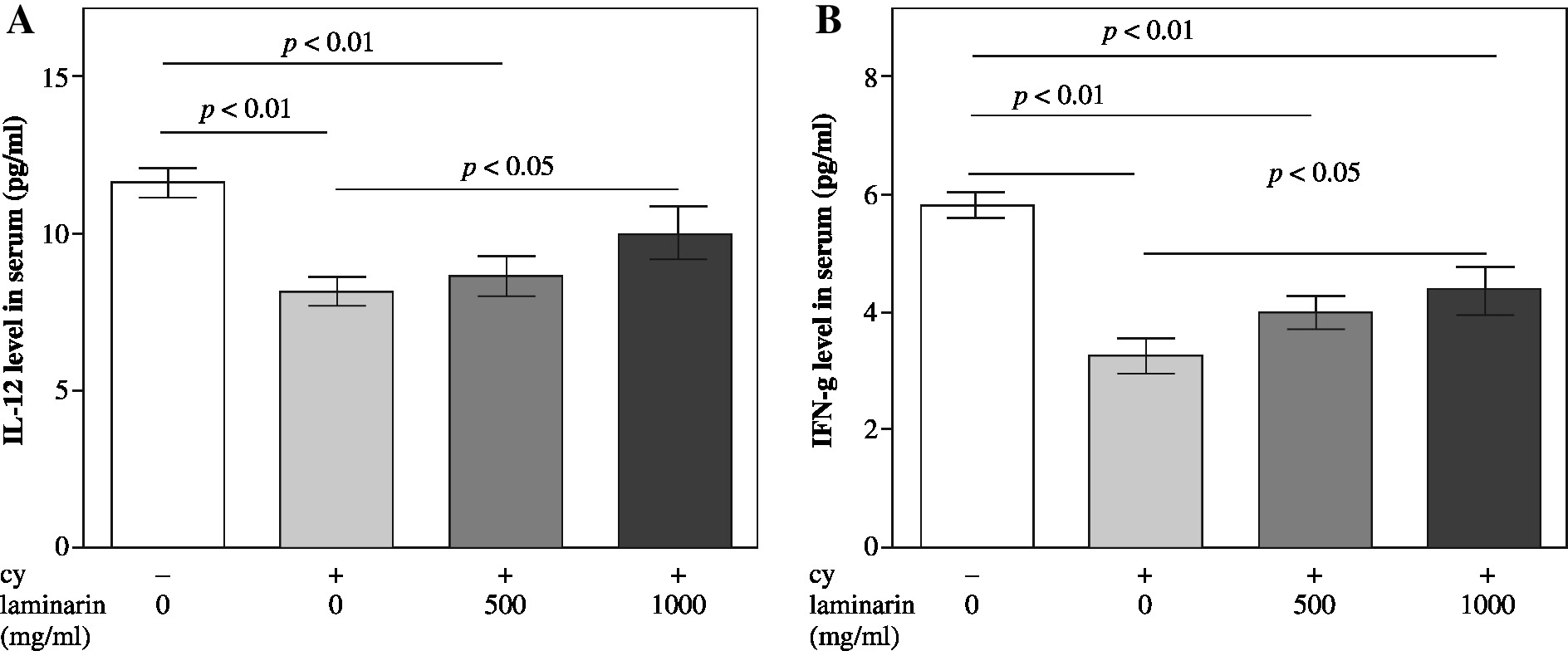 Effects of laminarin on IL-12 and IFN-a level in serum of immunosuppressive mice