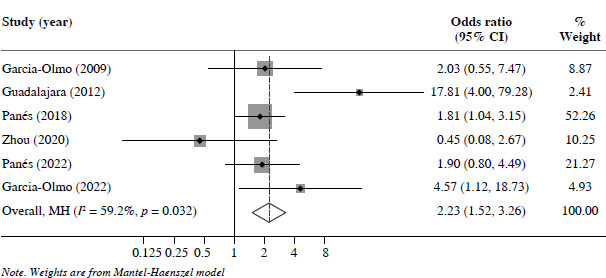 First, the studies included in our analysis were not RCTs. Two retrospective studies were included in this meta- analysis. Compared with all RCTs, the evidence may be insufficient. Second, we did not find a source of high heterogeneity despite using a fixed-effects model for the subgroup analysis. Third, the safety data for long-term MSC treatment of complex perianal fistulas are insufficient, and more trials addressing this important issue should be performed.