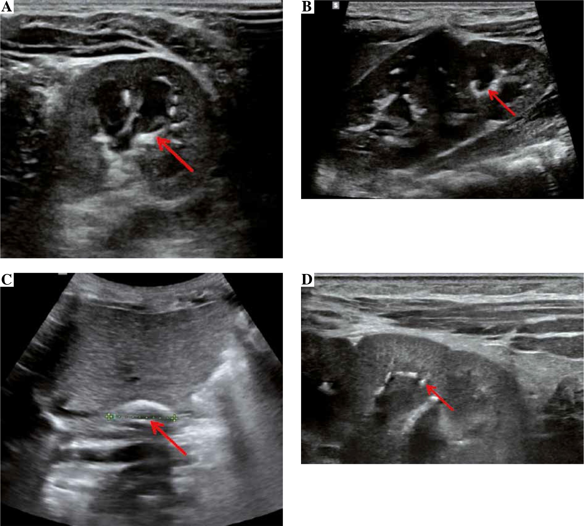 Calcifications within the renal parenchyma (nephrocalcinosis) can include both the core and medulla (Table 2).Calcifications within the renal medulla are most often associated with metabolic disorders and indicate the need for extensive metabolic and genetic diagnostics. On the other hand, calcifications involving renal cortex indicate a history of necrosis (e.g., as a result of perinatal hypoxia or renal thrombosis) [10, 14, 15].