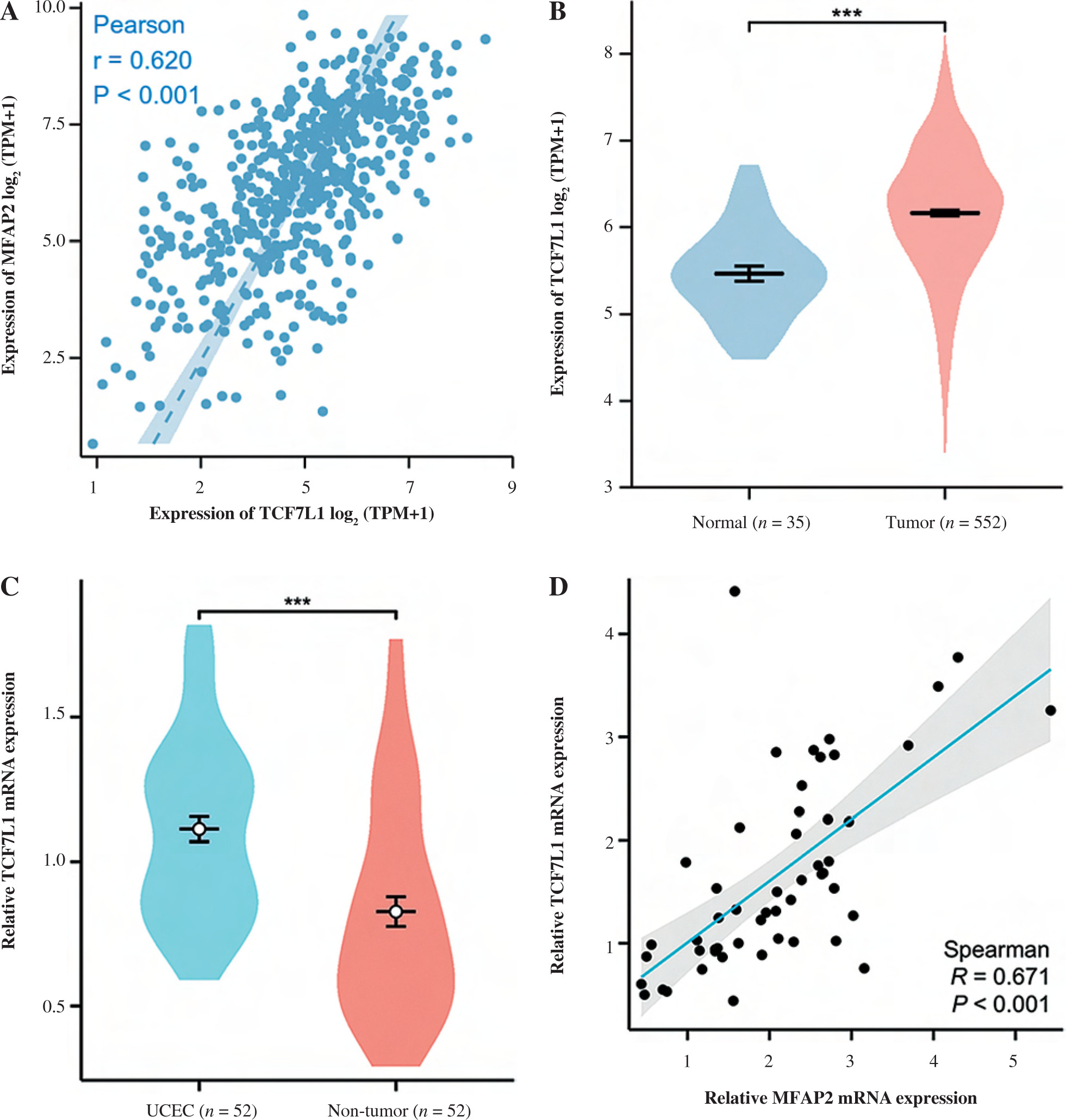 MFAP2 expression is positively associated with TCF7L1 in UCEC