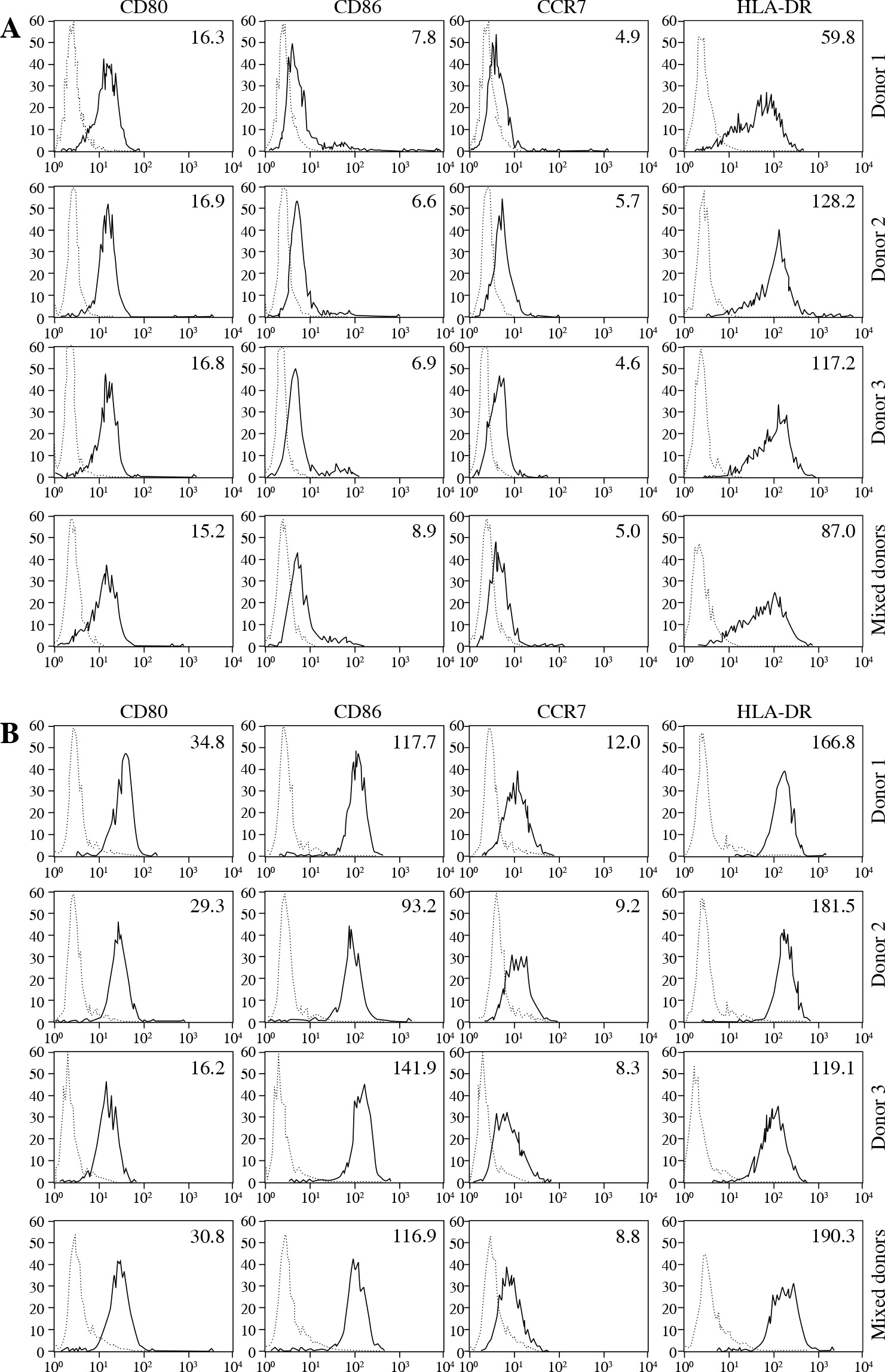Mixed allogeneic DCs maintain potent allo-stimulatory capacity