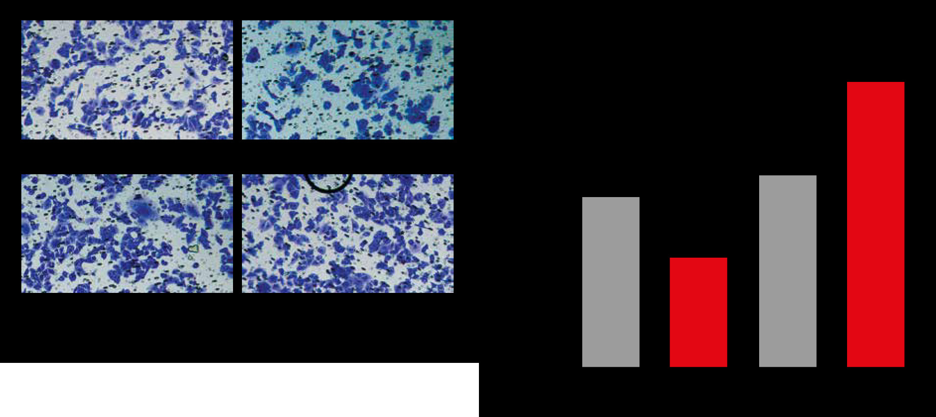 The cell migration assays were conducted by referring to previous studies, and the specific operation was as follows [22, 23]. The upper chamber of the 24-well transwell plate (Corning, USA) was precoated with Matrigel (BD Biosciences, USA) for invasion assays, and inserts without Matrigel were used for migration assays. Approximately 3 × 104 cells were seeded in the upper chamber and treated with FBS-free medium. Medium with 10% FBS was added to the lower chamber. After 48 h of incubation at 37oC, non-migrating cells were removed gently, and the rest were fixed in 90% ethanol and stained with 1% crystal violet. Cells were counted from five random fields under the inverted microscope.