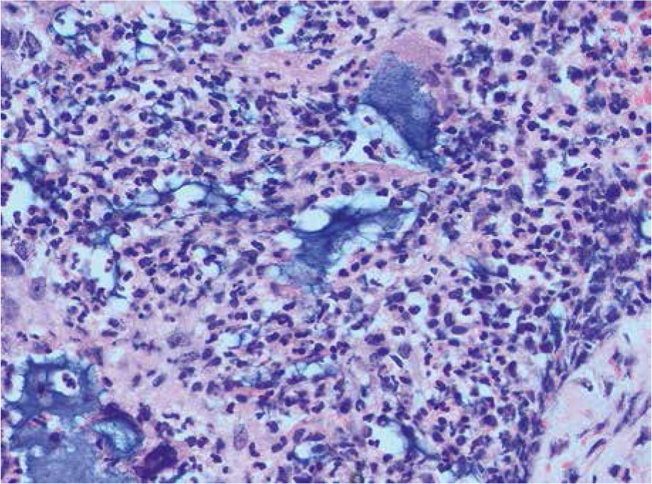 The tissue material was prepared according to the standard histological procedure. Slides for histopathological evaluation were stained with hematoxylin and eosin.