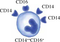 Non-classical endothelial patrolling monocytes are CD14+CD16++ in humans. The non-classical monocyte shows low expression of CD14 and additional co-expression of CD16. They have high fractalkine receptor (CX3CR1) expression but they also migrate in response to a variety of chemokines [17]. Non-classical monocytes are involved in endothelium intraluminal monitoring, complement and Fc γ-mediated phagocytosis of damaged endothelium, and neutrophil recruitment to the injury site. These monocytes are able to detect and respond to circulating nucleic acids and viruses via TLR7 signaling, and trigger an innate immune response by secreting cytokines and chemokines [18]. However, the exact role of the non-classical monocytes is still debatable. They have antigen-processing abilities [19], but they differ from classical monocytes in that they are involved in wound healing proces- ses [20]. Moreover, they have antagonizing functions towards classical monocytes and promote neutrophil adhesion at the endothelial interface via the secretion of TNF-α [21] but they do not produce pro-inflammatory cytokines at the same levels as the classical monocytes.