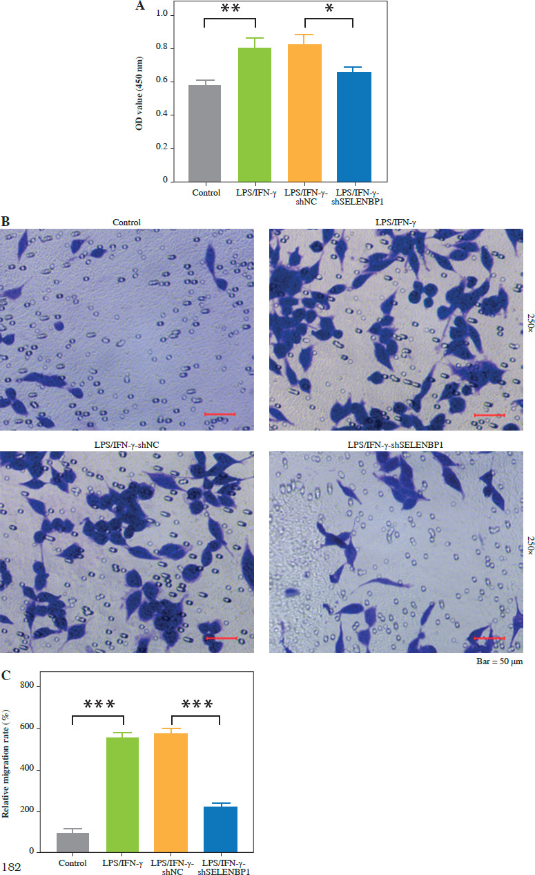 As described above, THP-1 cells from control, LPS/IFN-γ, LPS/IFN-γ-shNC, LPS/IFN-γ-shSELENBP1, and LPS/IFN-γ-shSELENBP1 + ML385 groups were cultured in DMEM supplemented with 10% FBS. For the purposes of the subsequent investigations, pre-cultured MH7A cells were then plated in 6-well plates and co-cultured with the previously treated THP-1 cells for 48 hours [18].